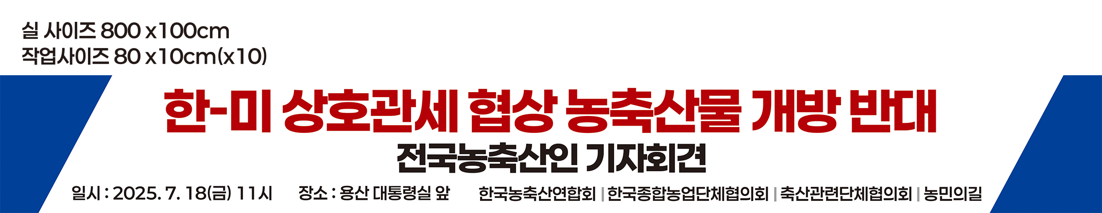 한미 상호관세 협상 농업개방 반대 기자회견 현수막