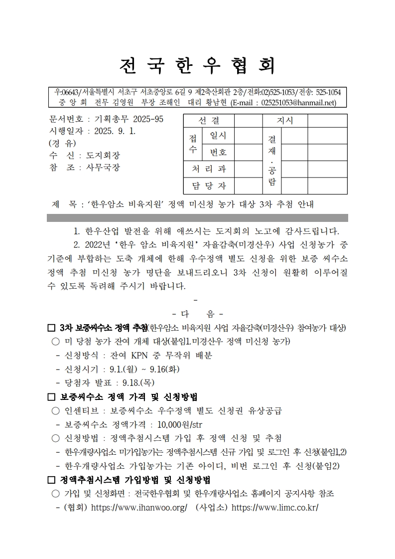 20250901 기획총무 2025-95 (붙임2)정액시스템 가입방법 및 신청방법.pptx 20250901 기획총무 2025-95 (붙임3)정액공급 대상 보증씨수소 현황.pdf