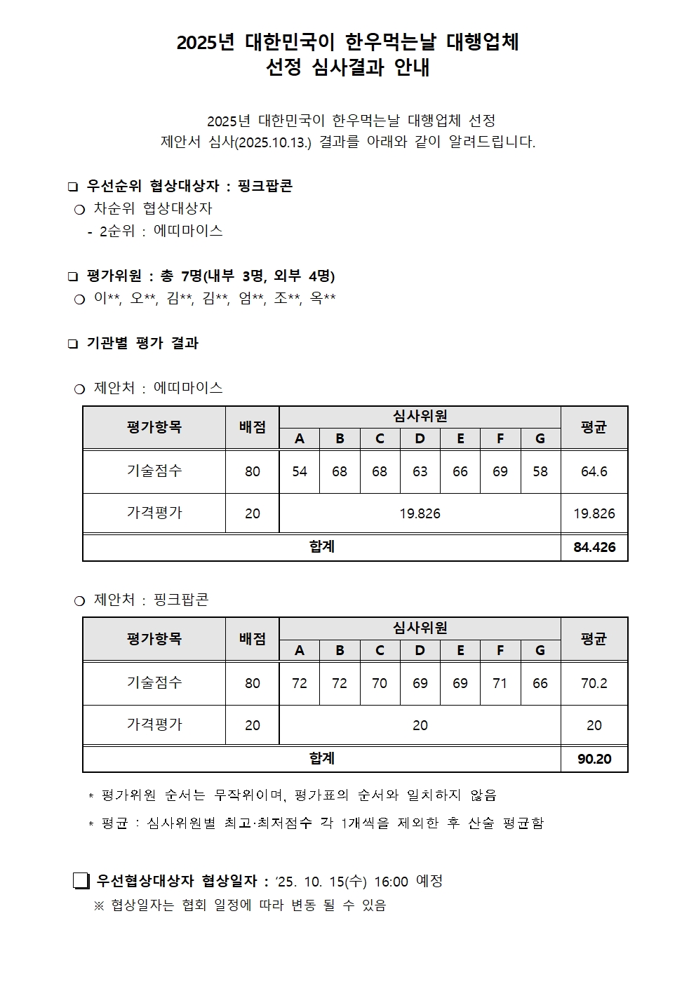 2025년 대한민국이 한우먹는날 대행업체 선정 심사결과 안내