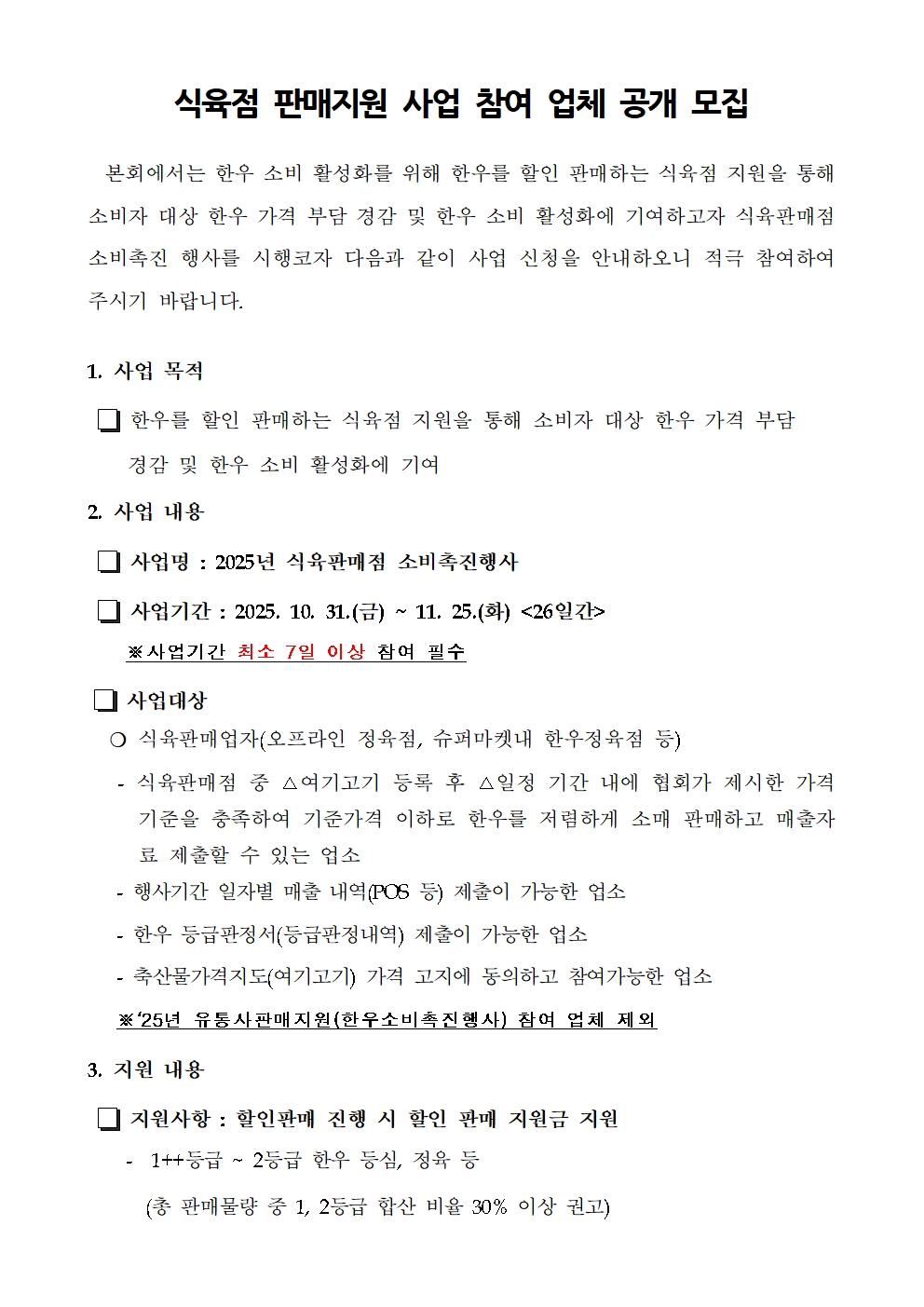 2025년 식육점 판매지원 참여업체 모집공고문_홈페이지(20251018)_확정.hwp