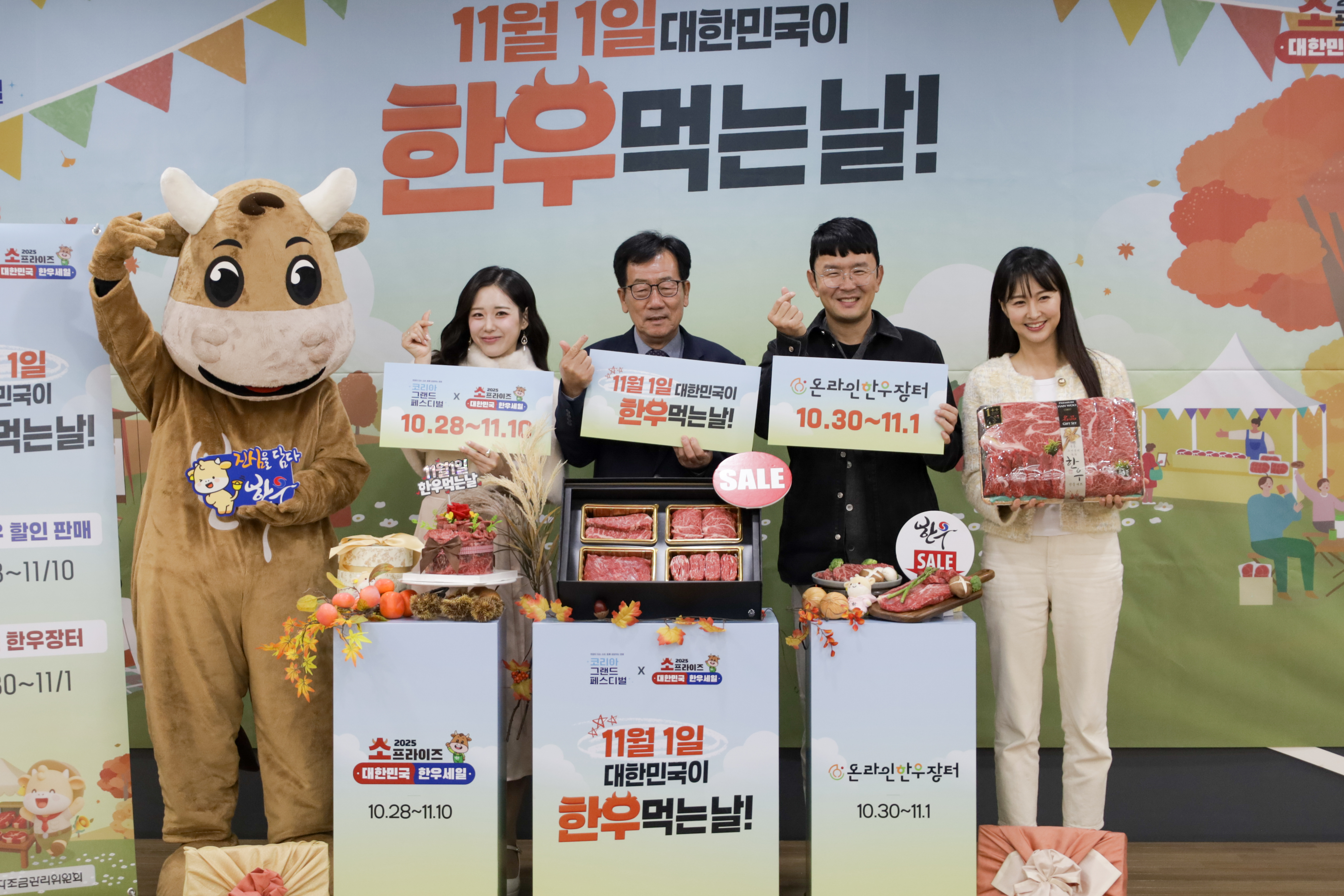 전국한우협회 민경천 회장을 비롯해 한우 명예홍보대사 개그맨 윤형빈, 트로트가수 윤서령이 참석해 전 국민과 함께하는 축제의 시작을 알렸습니다.