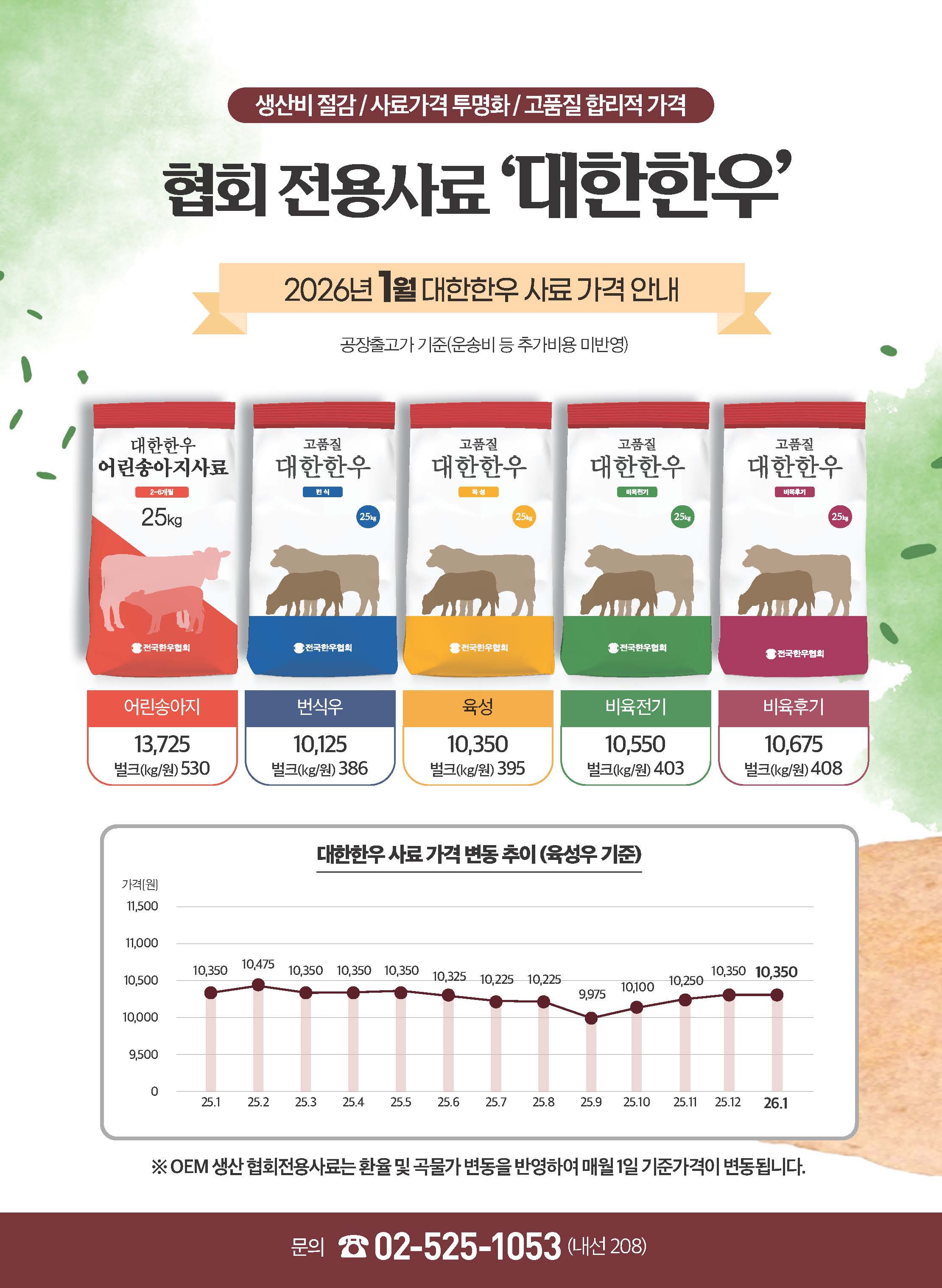 협회전용사료 '대한한우' 2026년 1월 가격표