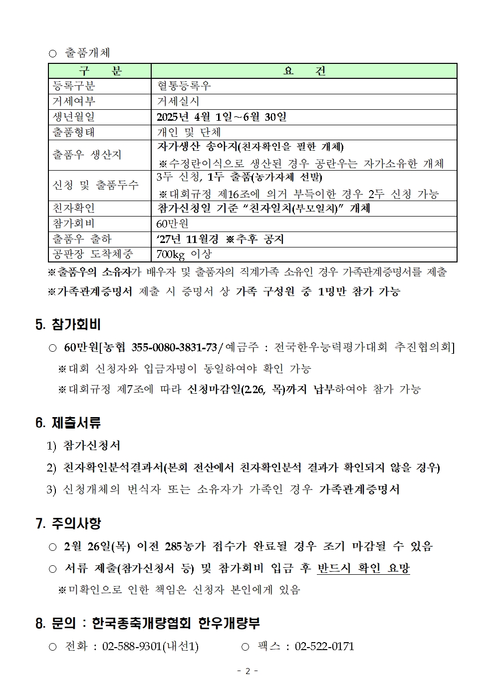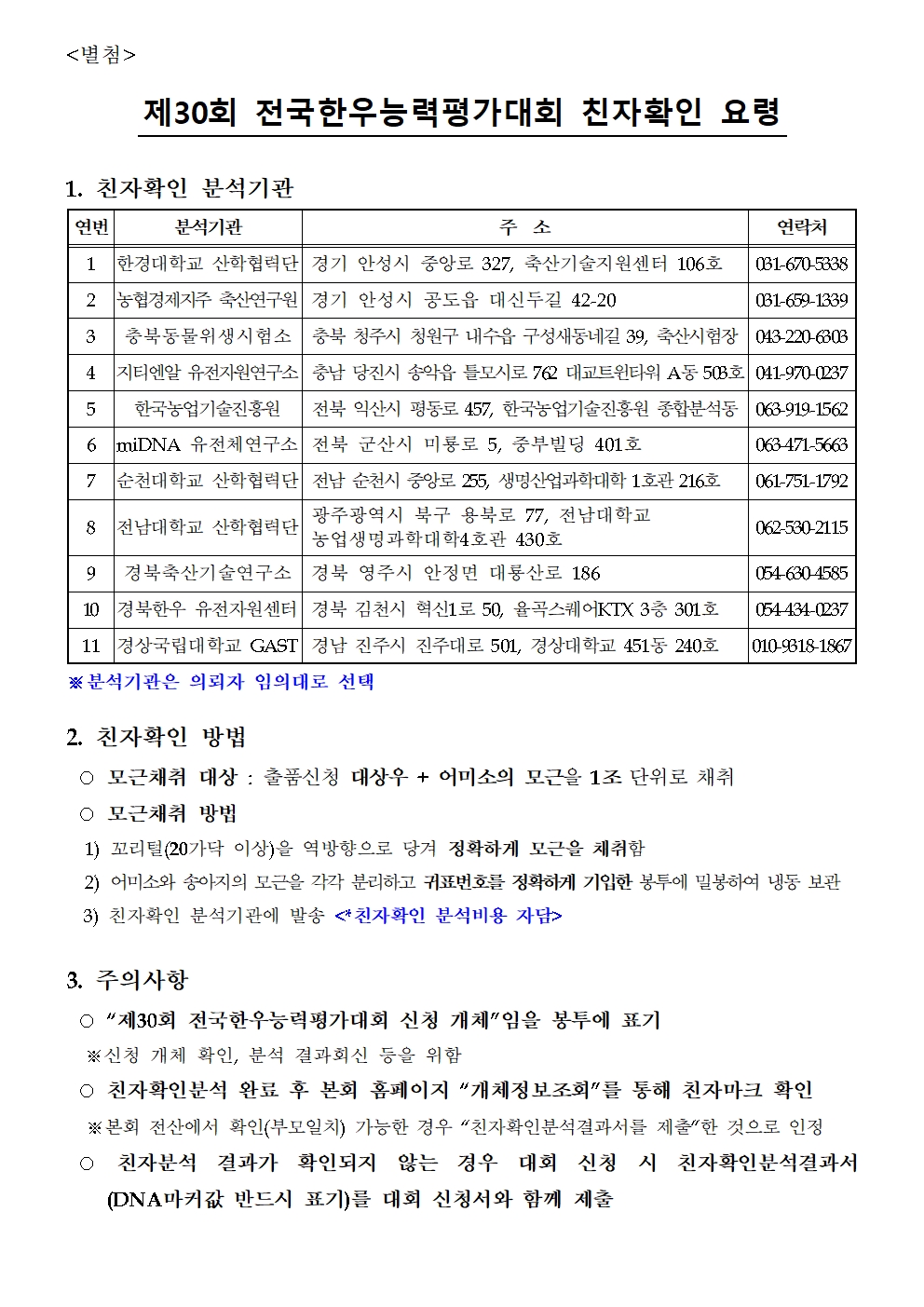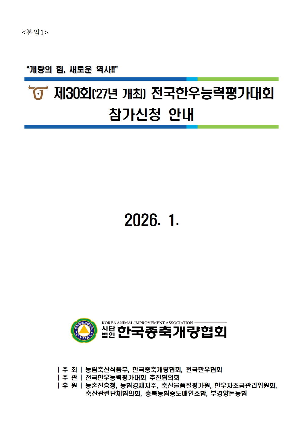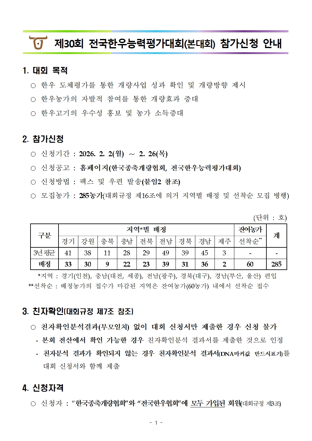 제30회 전국한우능력평가대회(본대회) 참여농가 모집 안내
