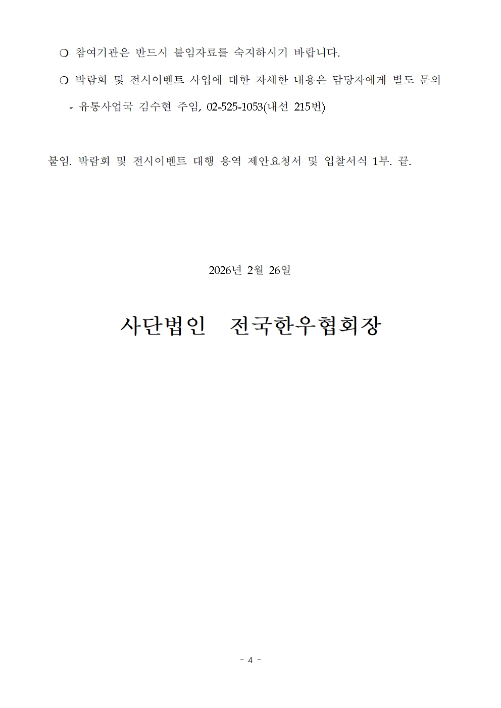(20260226) 박람회 및 전시이벤트 대행 용역 제안요청서 및 입찰서식.hwp (20260226) 박람회 및 전시이벤트 입찰 공고문.pdf