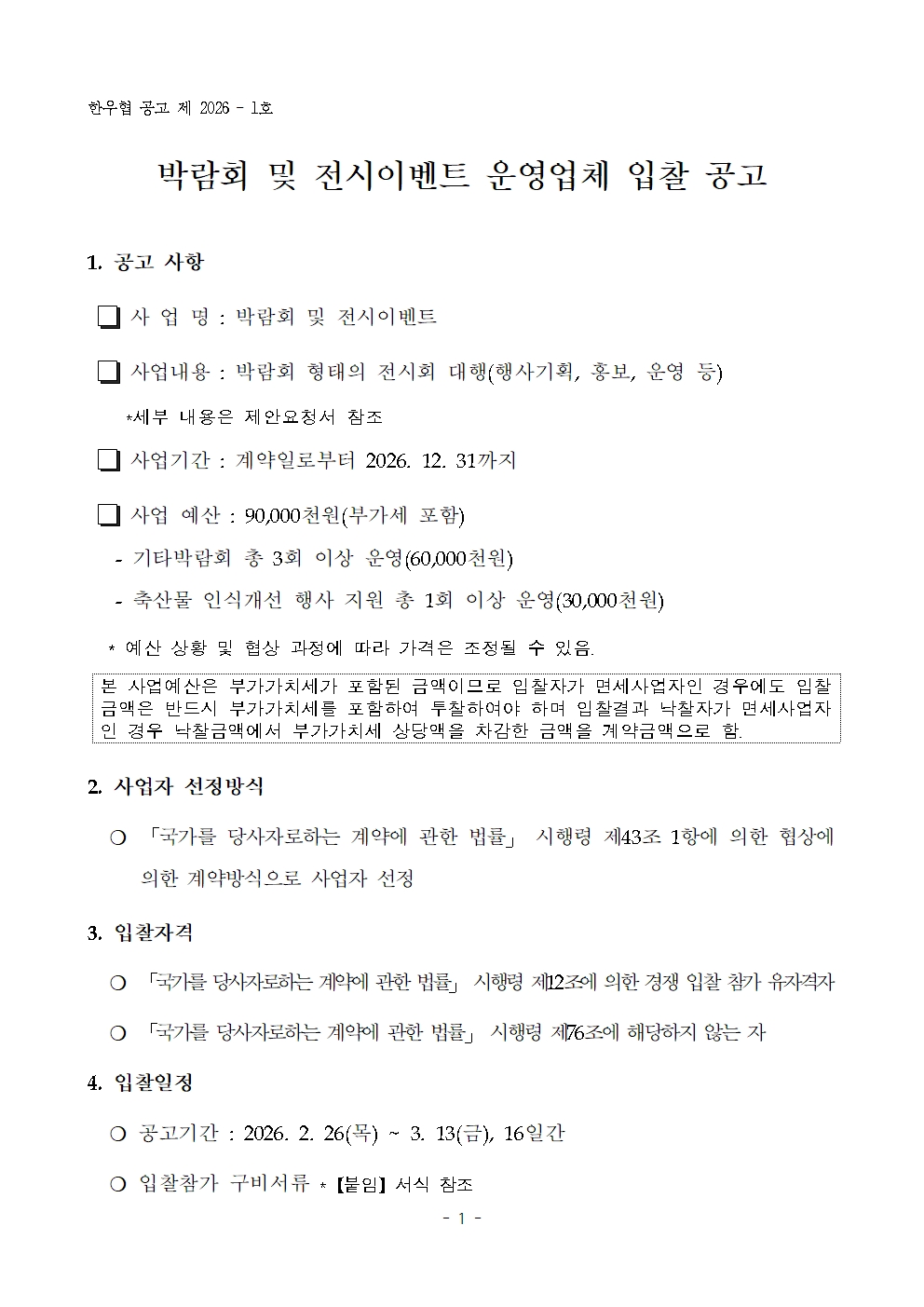 2026년 박람회 및 전시이벤트 운영업체 입찰 공고